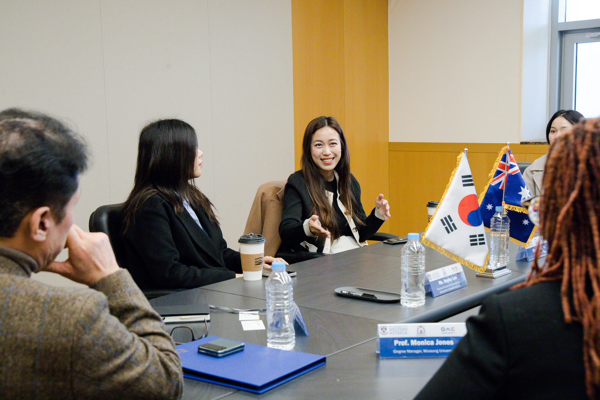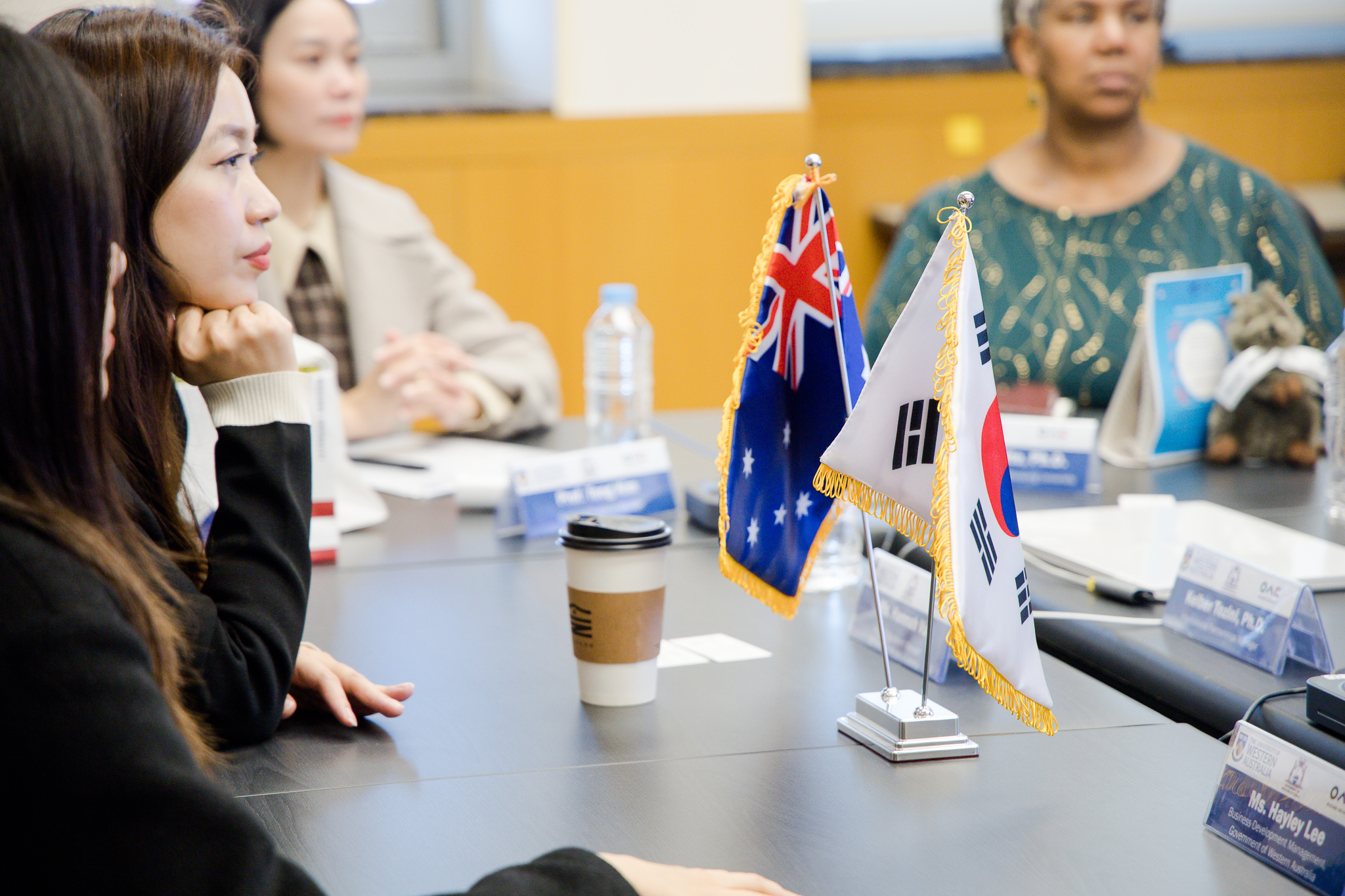 On November 14, 2025, the Office of International Affairs had the pleasure of welcoming Ms. Hannah Vu from The University of Western Australia (UWA) and Ms. Haylee Lee from the Government of Western Australia to Woosong University.