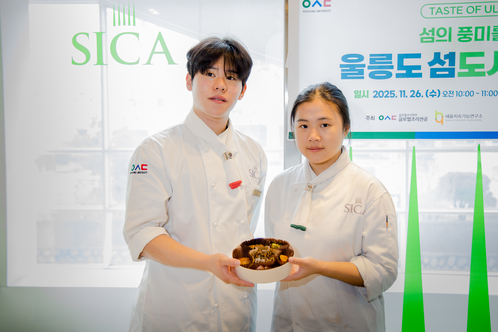 Last Wednesday, Woosong University’s Global Culinary Arts students launched the “Taste of Ulleung” Lunchbox Project, creating modern lunchboxes inspired by Ulleungdo’s unique local ingredients.
