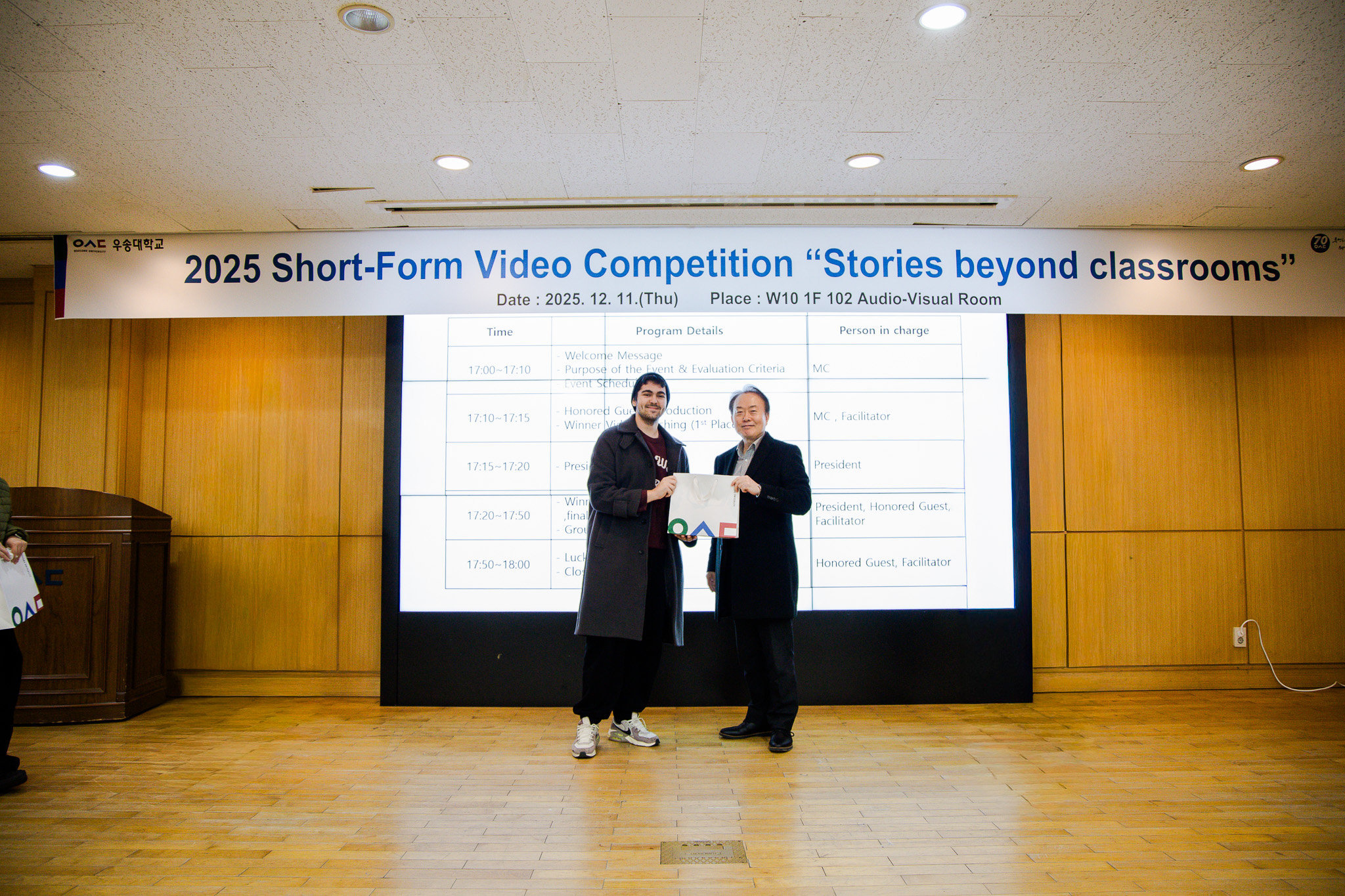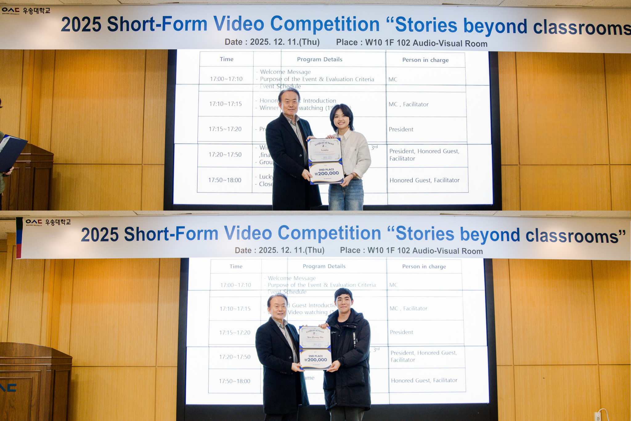 Woosong celebrated student perspectives and original ideas through its 2nd annual short-form video contest, themed “Stories Beyond the Classroom.” Designed to encourage creative expression beyond traditional academic environments, the contest provided students with an opportunity to share personal stories, unique viewpoints, and innovative ideas through short-form video content.