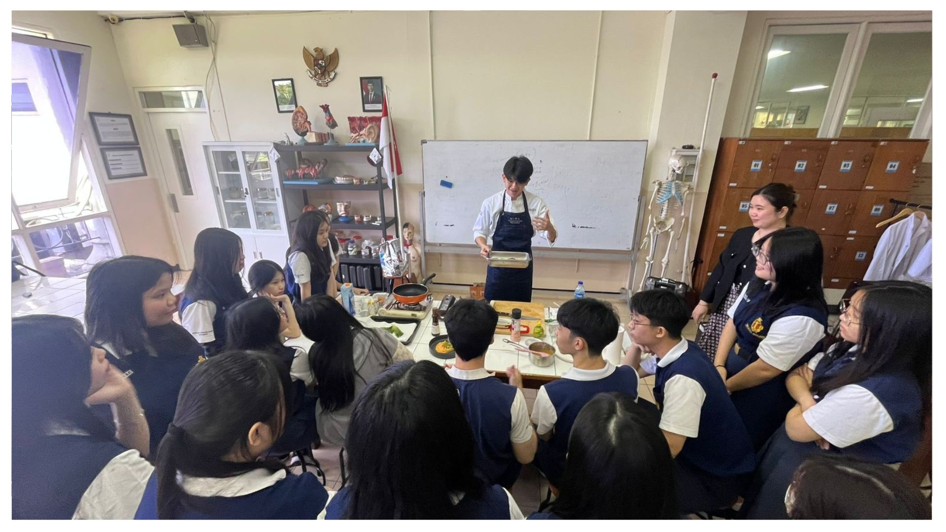 On 27 February 2026, Clifford Fudianto, an Indonesian student from Woosong University's Global Restaurant Management program, took his culinary skills back home leading a cooking demonstration at Gloria Christian High School in Surabaya, Indonesia.