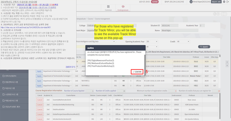 If you already registered for the Track/Minor (which is considered as the 2nd major) you will see a pop-up otherwise directly go to the course selection. Usually a student registers for the Track/Minor after a year of the program.